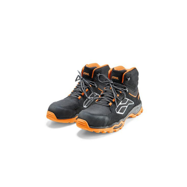 Material i sipërm i bërë prej lëkurës së cilësisë së lartë me kokrriza dhe rezistente ndaj ujit. Ngjyrë e zezë, e ajrosshme dhe astar që thahet shpejt, me qafa me vata, rripa reflektues në të dyja anët, shtroja që hiqen, taban çeliku për të mbrojtur kundër deformimit, mbrojtje dhe gomë rezistente ndaj vajit/karburantit/taban EVA në përputhje me EN 20345 S3.
