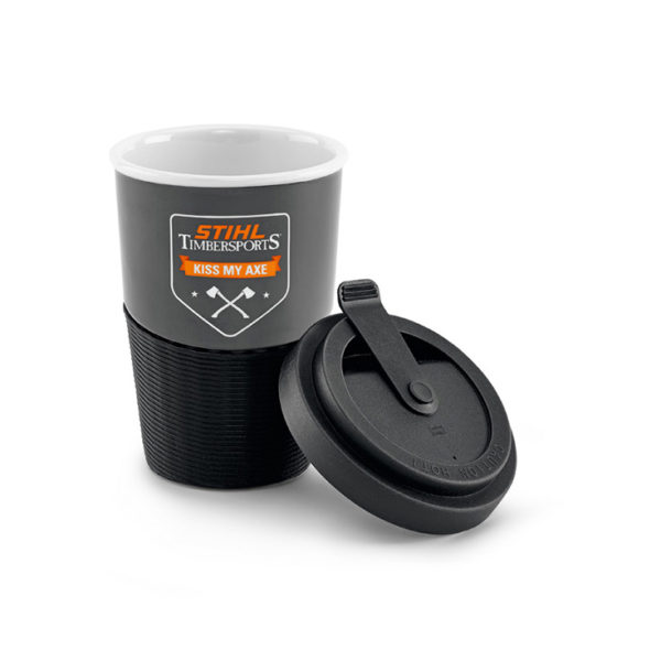 Filxhani i kafes, i përbërë prej porcelani, me dizajnin e STIHL TIMBERSPORTS, jo vetëm që duket bukur, por është edhe shumë praktik. Ka një volum prej 300 ml dhe një kapak prej silikoni izolues, pra filxhani juaj i ri-përdorshëm do e mbajë pijen tuaj të preferuar të nxehtë.