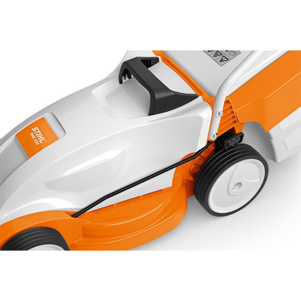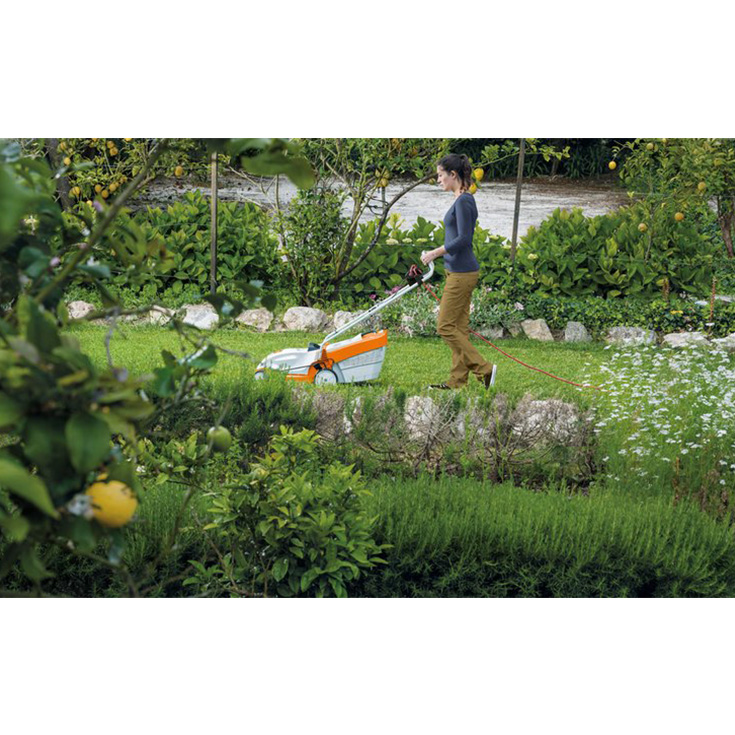 Korrëse bari elektrike, e lehtë dhe kompakte, me një gjerësi prerjeje 33 cm për lëndina të vogla. Me përshtatje qendrore të lartësisë së prerjes, si edhe me dorezë të palosshme dhe të